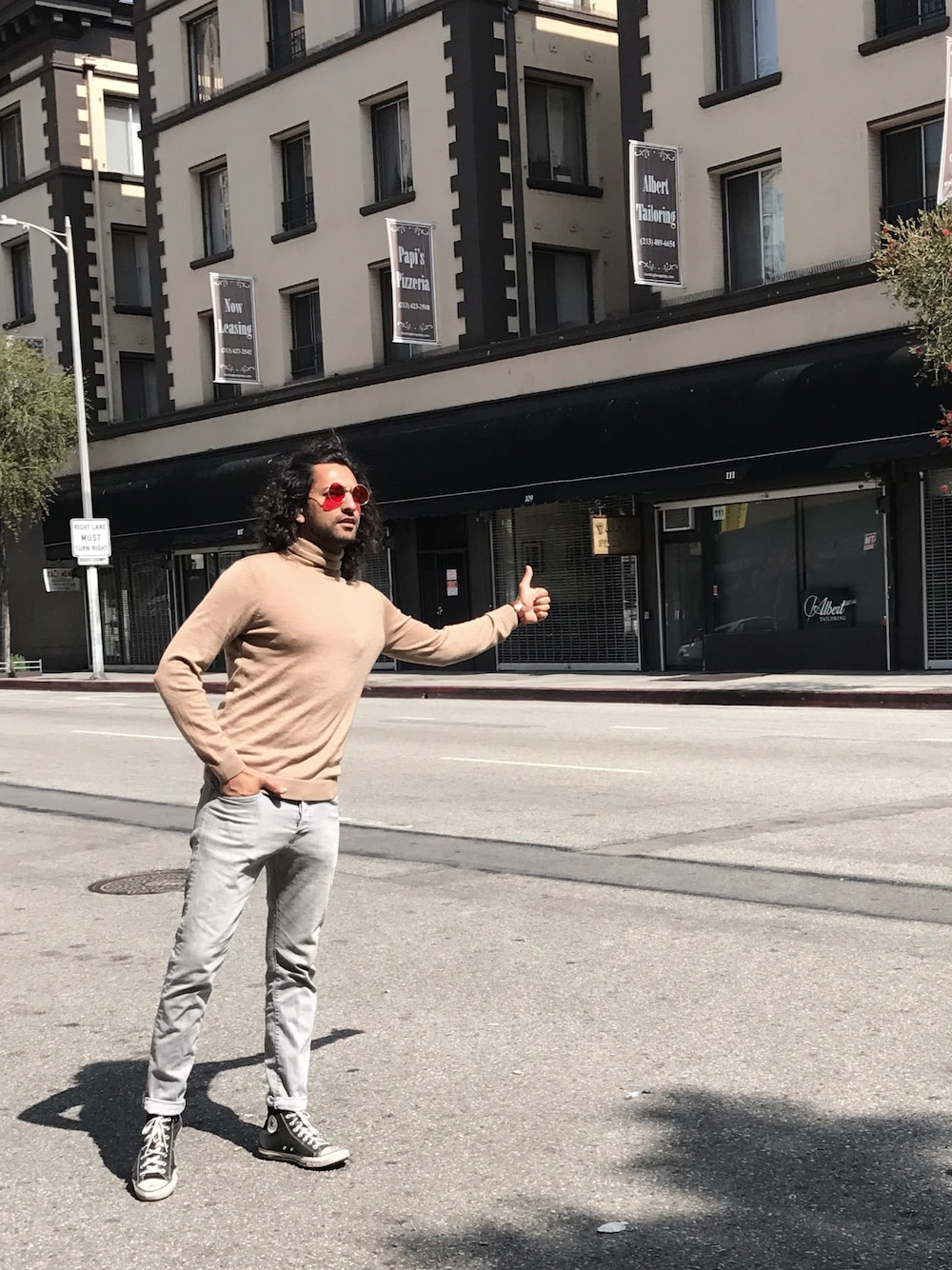 ベージュ系のその他トップス、シルバー系のその他パンツ、ブラック系のスニーカーを着用したメンズの春コーディネートの1枚目の写真