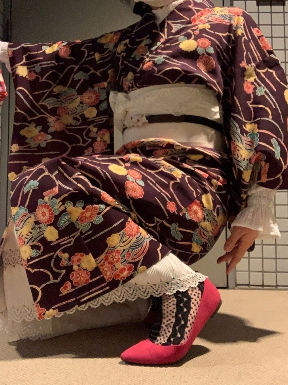 先日のお出かけで火がつき、「このひとえ、まだ今年着てないじゃん!」と思いついたら着ずにはいられなかった…10月前半。恒例のカフェのゲームイベントにて。