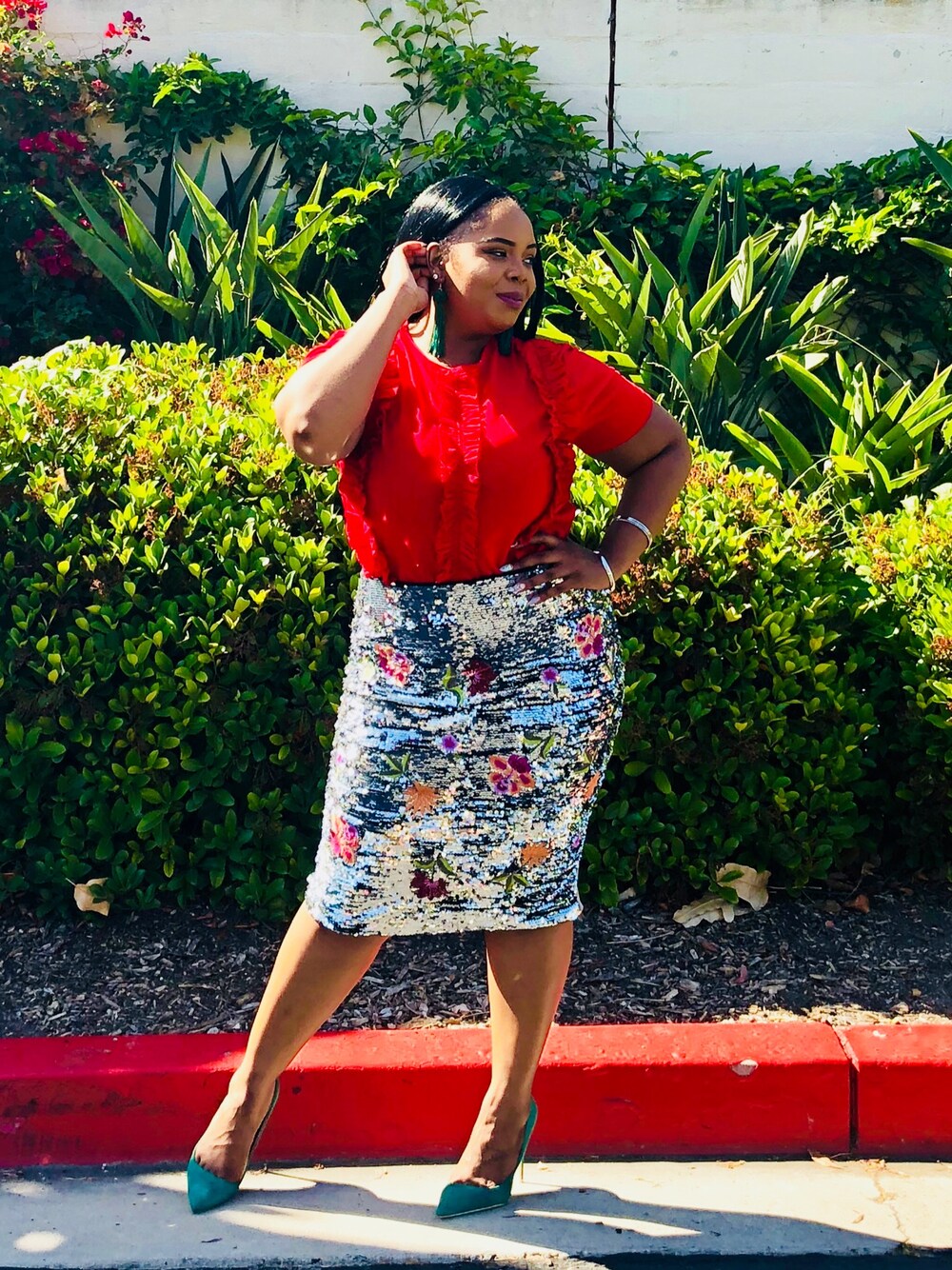 A simplistic top dressed up with a sequin skirt. Always draws attention...