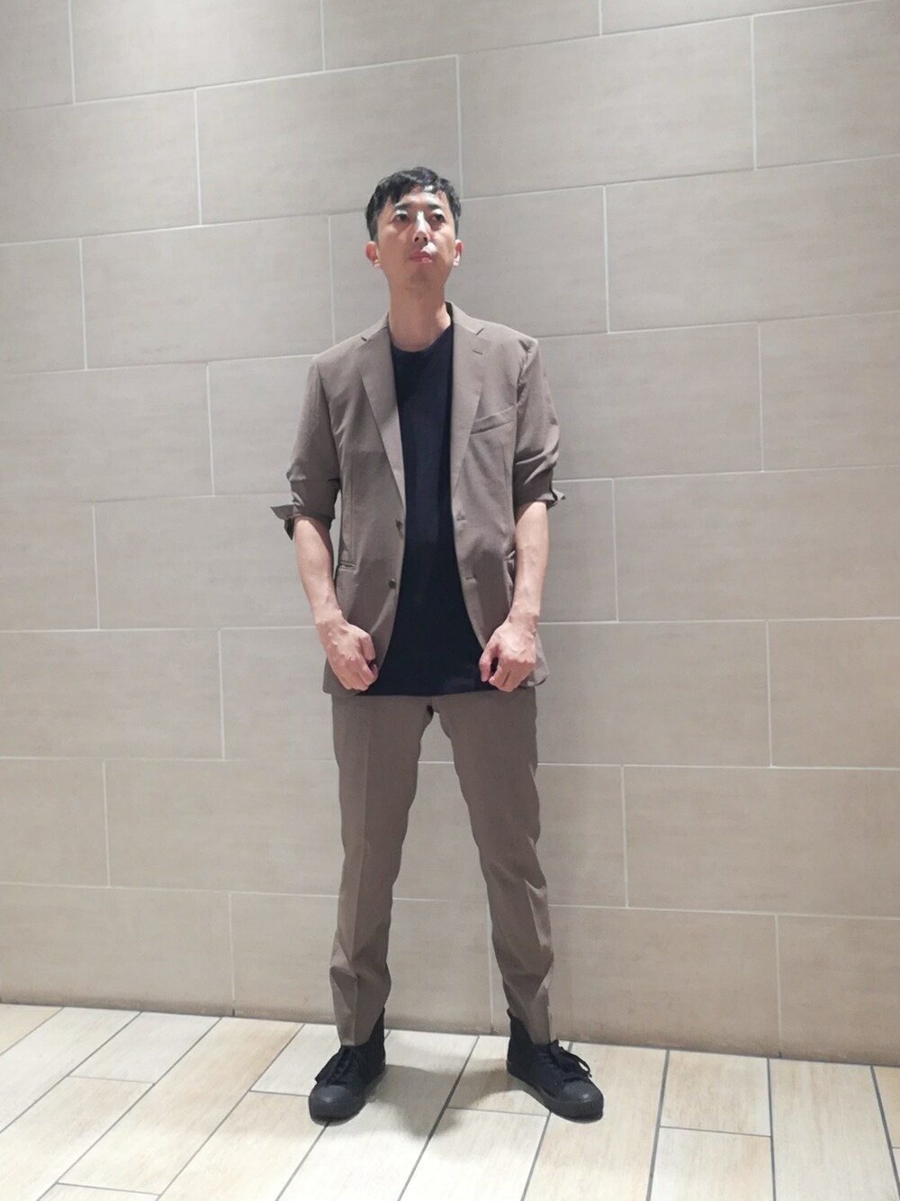 ブラウン系のその他アウターを着用したメンズの夏コーディネートの1枚目の写真