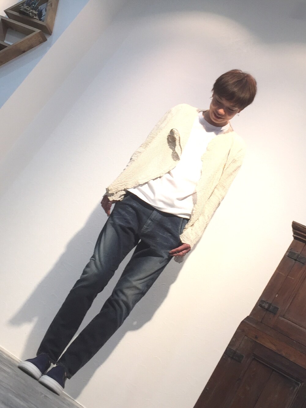 スタイリスト川田さんのオススメ美ラインデニム!レザーがメッシュで凝ってるから、シンプルなコーデ