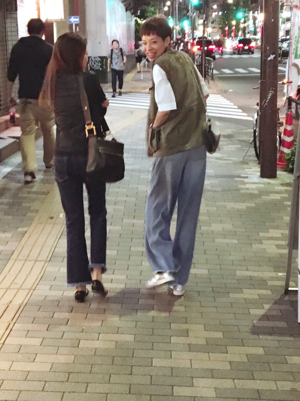 恵比寿で久しぶりの友達と久々ご飯。 スタッズのついたカーキのベスト、長いシーズン着られてすごく便利! 最近買ったテロテロデニムのワイドパンツも涼しくていい感じだけど、東京はちょっと寒いな…