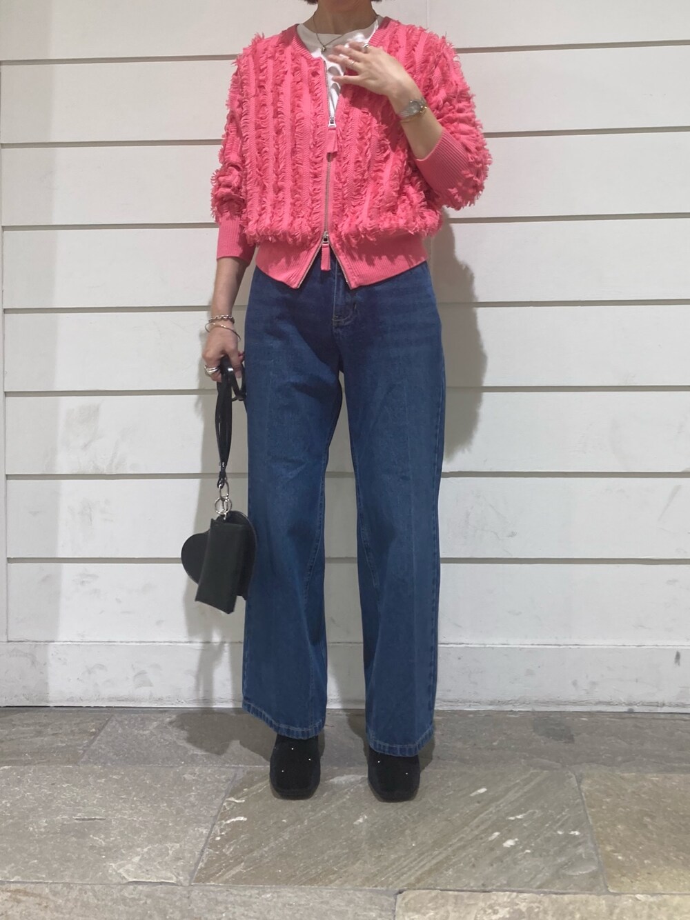 ayumi(ノーリーズアウトレット南町田店)のカーディガン/ボレロ「ニットフリンジZIPカーディガン」を使ったコーディネート