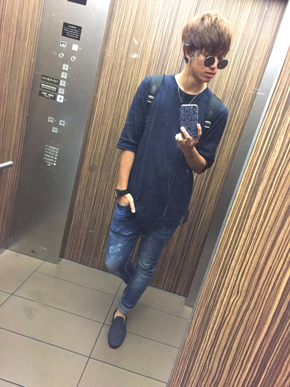 七分袖のフリンジがポイント! シューズとパンツをデニム素材の青で統一し、トップスのネイビーのフリンジで全体をまとめてます^ ^