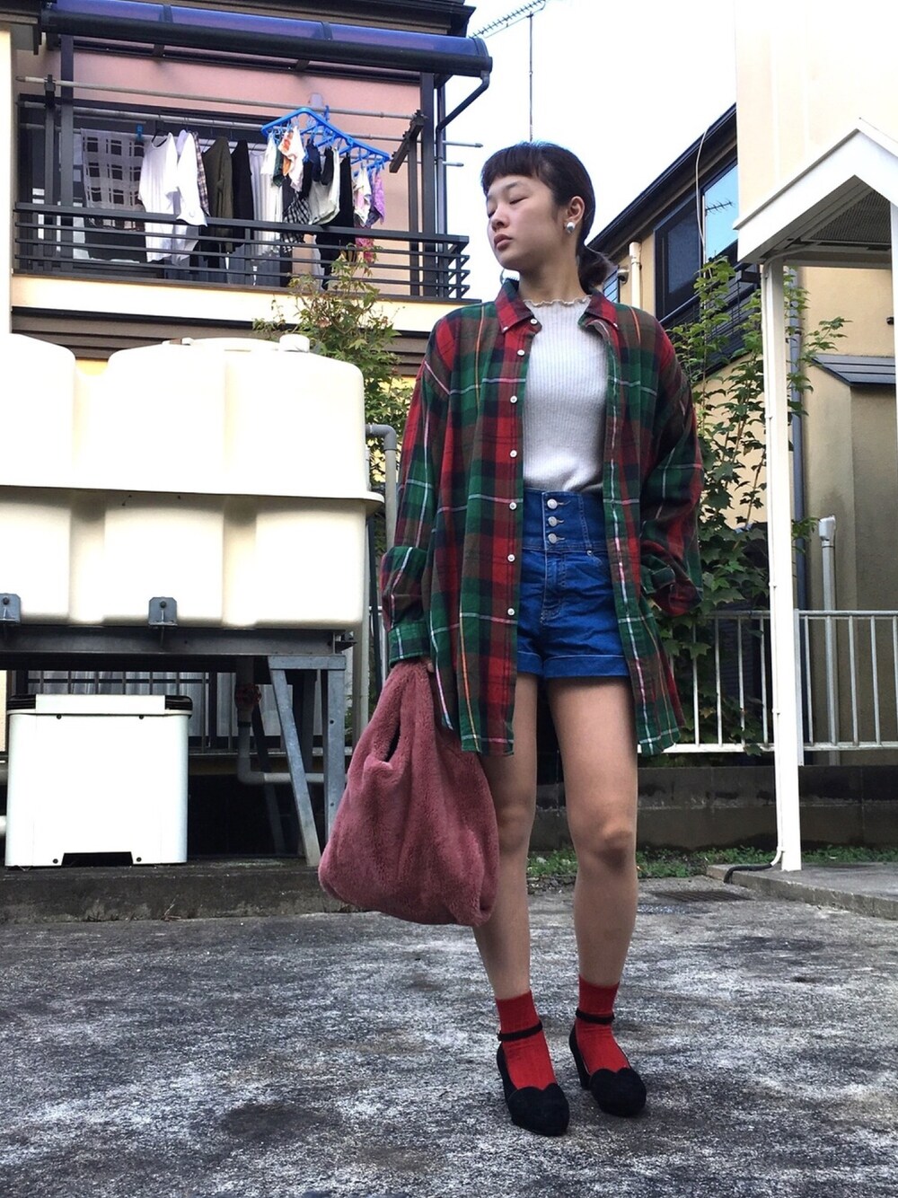 11/6 秋だけど、ショーパン履いてみた!まだいける季節かなー赤で色はまとめてみました〜 いつもありがとうございます( ¨̮ )
