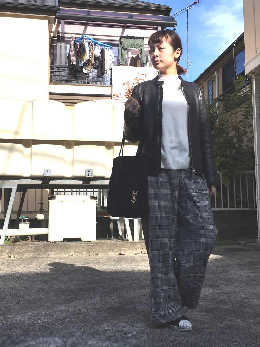 12/1 友達んちに忘れてったワイドパンツが返ってきた笑 寒くなってきた、、 モノクロコーデかな いつもありがとうございます( ¨̮ )
