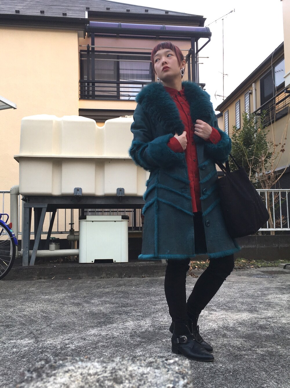 1/25 あったかコーデ 脱いだら鮮やかな赤いシャツです いつもありがとうございます( ¨̮ )