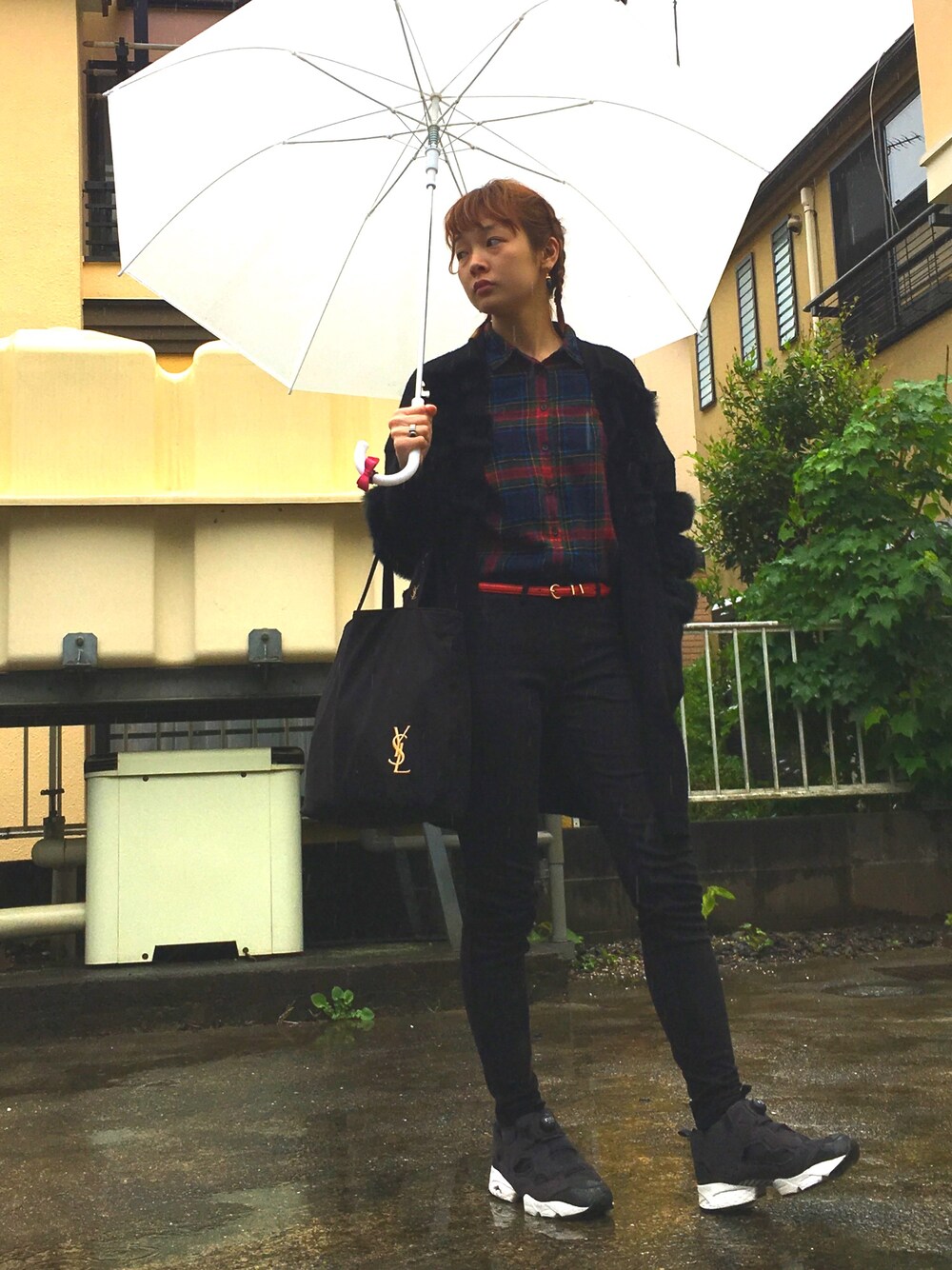 4/30 雨でした ネルシャツコーデ いつもありがとうございます( ¨̮ )