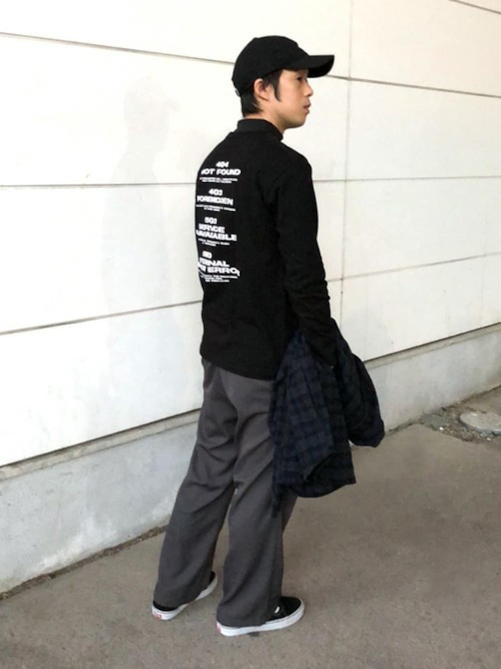 設定完了インターネットのエラー表示がバックプリントになっているロンT。 モックネックをレイヤードして少しこなれた感じにしたつもりですが、 差し色をどこかに入れるとまた違った印象をあたえてくれますね。 キャップ・スラックスで打ちっ放しにいそうな格好になりましたね。行ったことありませんが。