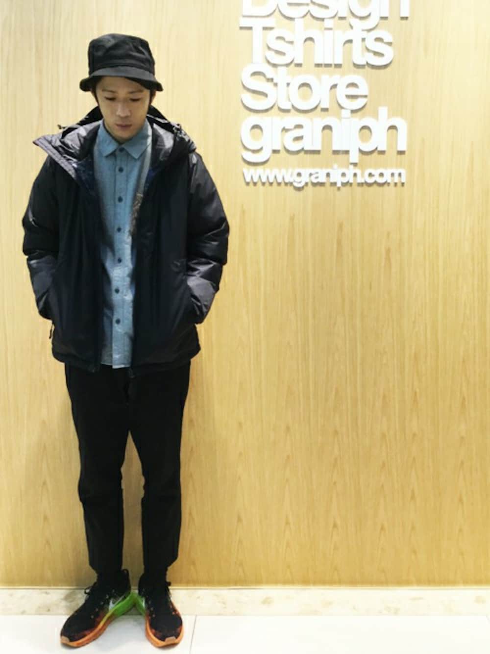 マイブームのモノトーンコーデ?ブラックコーデ? 兄貴分のマネです。 表地は防水、撥水、透湿機能を兼ねたUREMAXを使用。 裏地にはSornaという特殊な中綿を使ったブルゾンに、 胸ポケットのニットが特徴的なシャツは、表地を起毛させ、暖かみある生地感となっています。