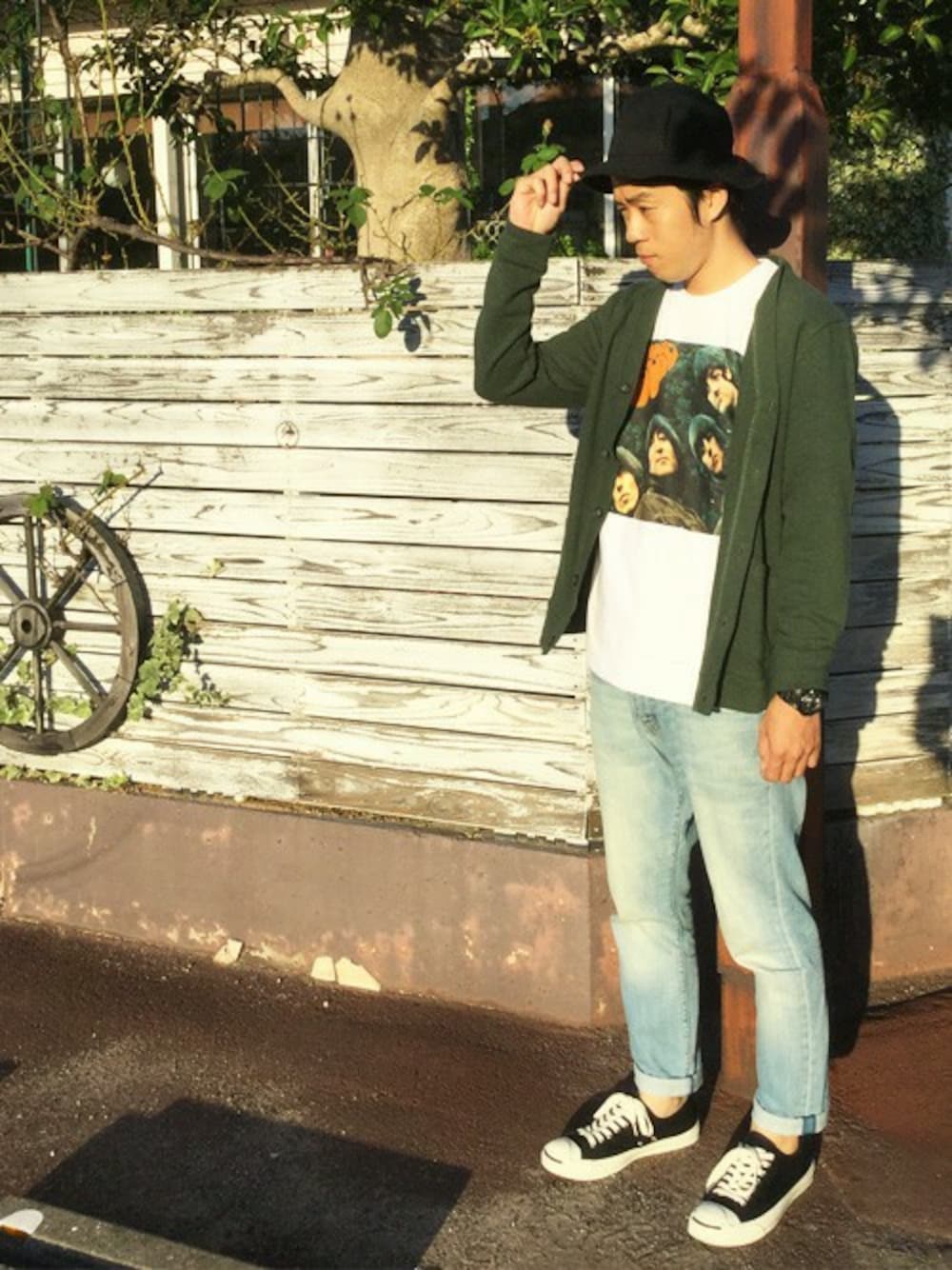 古着ぽいコーディネートにしてみました。 梨地のカーディガンはこれからの季節にぴったりのアイテムです。 普段はMサイズを着ることが多いのですが、こちらはLサイズが個人的に良いサイズ感です。 よく見るとグラニフの人気キャラ、ビューティフルシャドーがチラホラ、、、 インナーはビートルズシリーズから「ラバーソウル」ジャケットをプリントしたTシャツをチョイス。 「ラバーソウル」、 ビートルズのアルバムの中で、最高傑作を選ぶならこのアルバムではないでしょうか? 僕の一番のお気に入りは「 In My Life」です! 聴いたことがない方は是非!!
