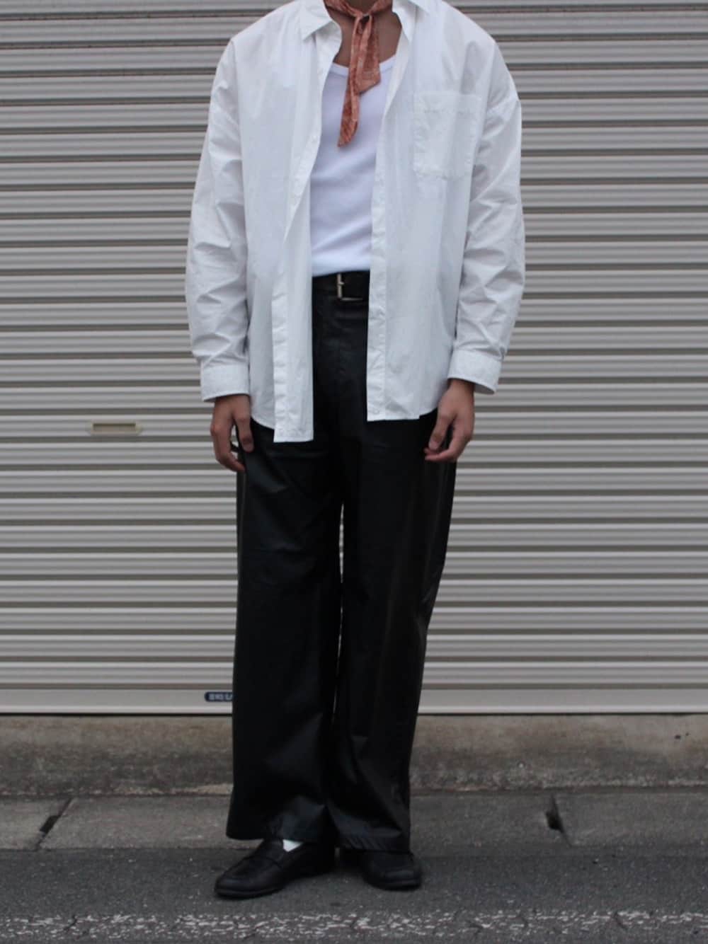いつもいいねありがとうございます😊 ・ ・ 今回は黒のレザーパンツに長めの白シャツで合わせてみました! ・ ・ スカーフでワンポイント違う色を入れるのはおすすめです👍 ・ Instagramのフォローもお願いします! i_ka_suで検索!🔍
