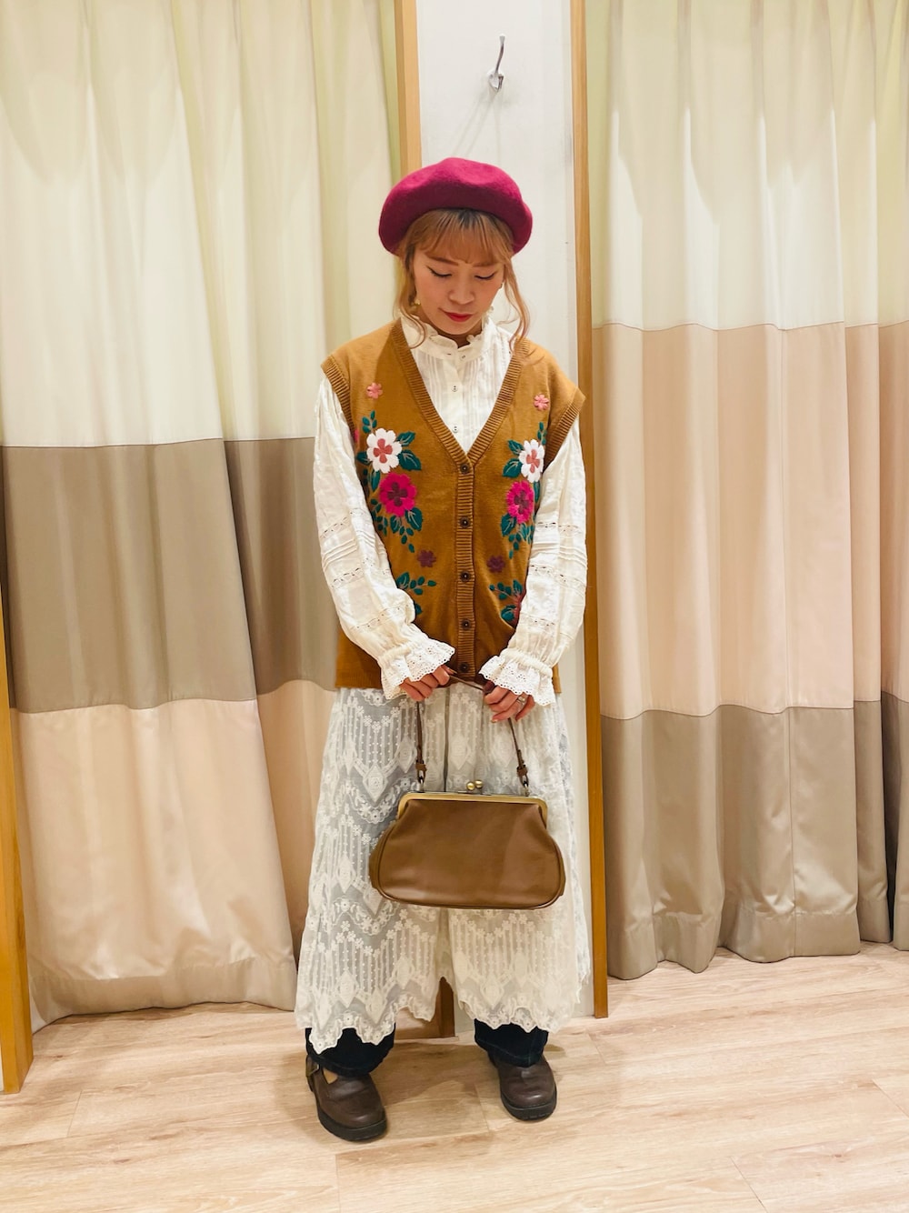 ご覧頂きありがとうございます🌷.* SM2 keittio イオンモール日の出店の "MiA"です/•᷅•᷄\୭ 花柄刺繍×シアー総刺繍コーデ✿。.゚ カタログでも人気な花柄刺繍ベスト❁⃘*.゚ レトロな雰囲気で 少し古着感がありとても可愛いです୨୧ シアー生地のエプロンスカートは 繊細な刺繍のデザインがとても素敵 ✼°。* インナーのスカートとセットなので 別々でもコーディネートすることができます!! 少しずつ気温も下がってきて 秋服が楽しめる様になってきましたね🐿🍁 秋服が一部MAX60%オフまで お値下げになっていますので 是非コーデを参考に 店頭やオンラインショップをご覧下さい♡ ̖́- ≣≣≣≣≣✿≣≣≣≣≣≣≣≣≣≣✿≣≣≣≣≣≣≣≣≣≣✿≣≣≣≣≣ *シャツ ”フリルスタンドカラーレースプラウス” キナリ/¥6,490 40%off *ニット "花柄刺繍ニットベスト" キャメル/¥6,490 40%off *スカート ”シアー総刺繍エプロンスカート” キナリ/¥7,590 30%off *パンツ "カーブシルエットデニムパンツ" ネイビー/ M /¥6,490 *帽子 "[消臭効果]バスクベレー帽" ボルドー/¥4,290 *バッグ "[2WAY]ガマグチショルダーハンドバッグ" ブラウン/¥5,390 *靴 "Tストラップシューズ" ブラウン/ M /¥6,490 秋のお洋服も続々入荷しております🐈🧶 是非お近くの方は イオン日の出店に遊びに来てください❁⃘*.゚ ≣≣≣≣≣✿≣≣≣≣≣≣≣≣≣≣✿≣≣≣≣≣≣≣≣≣≣✿≣≣≣≣≣ ここまでご覧いただき ありがとうございます🧸⸒⸒ 是非 お気に入りやフォローもお願い致します(*ˊ ˋ*) 今後も投稿頑張りますᵕ̈* ではまたお会いしましょう❁⃘*.゚