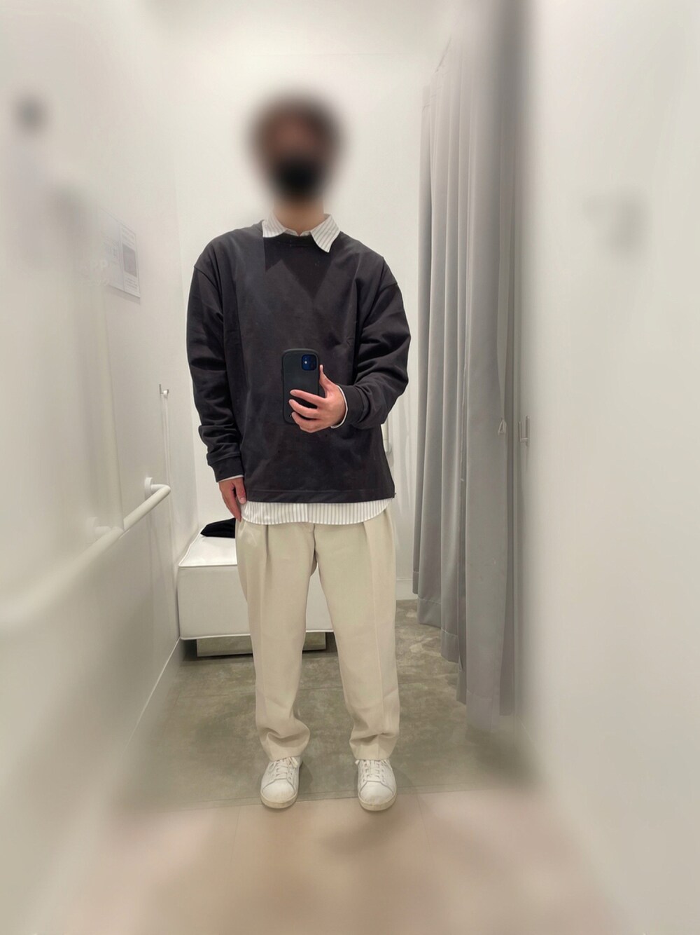 【ニット×シャツコーデ】 今回は秋のWYM LIDNMコーデ! WYM LIDNM トレンド感や季節感を感じられる白のパンツを合わせてみました!またコーデュロイのパンツと合わせてみてもよき◎