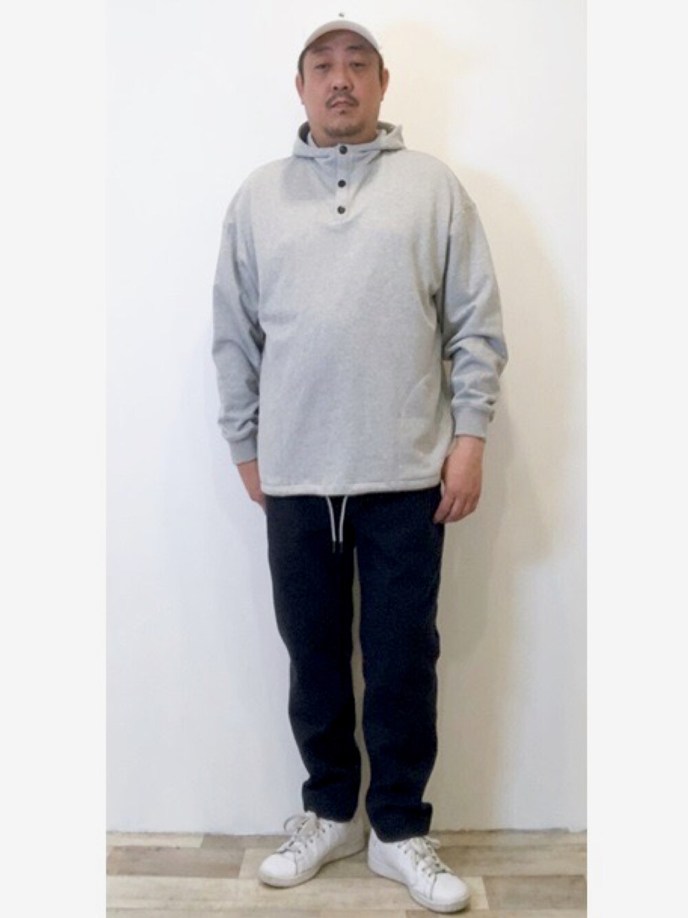 これから重宝するパーカーのコーディネートです。