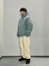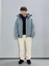 〈アウター〉 ラップダウンパーカー | WRAP DOWN PARKA XLサイズ着用 〈トップス〉 ロゴ クルースウェット | LOGO CREW SWEAT Lサイズ着用 〈ボトムス〉 バギーフィット ジーンズ | BAGGY FIT JEAN Lサイズ着用 厚手のスウェットを着込み、ダウンパーカーはワンサイズアップ。 トレンド感のあるニュアンスカラーが魅力。