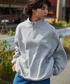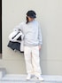 シンプルなスタイルに程よいラフさを加えた大人のカジュアルコーデ。ライトグレーのハーフジップスウェットとホワイトデニムパンツで、落ち着いた配色とクリーンなシルエットにまとめました。ハーフジップスウェットは、軽やかなグレーのトーンがどんなアイテムにも馴染みやすく、今季も注目のアイテム。ホワイトデニムパンツは、コーデに抜け感をプラスしながら、ややゆったりとしたシルエットが流行りのスタイル。手に持っているダウンジャケットは、寒い季節に備えた必須アイテム。全体のコーディネートに馴染むオフホワイトをチョイス。