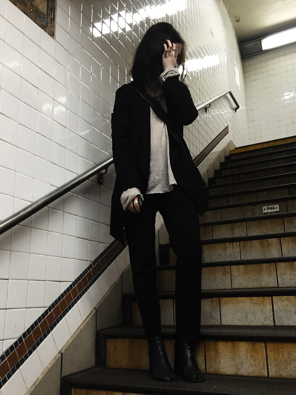 Anteprima jacket, Haider Ackerman longsleeve, Rick Owens wool trousers, MMM tabi heeled boots, M.A+ embryo bag (not pictured)