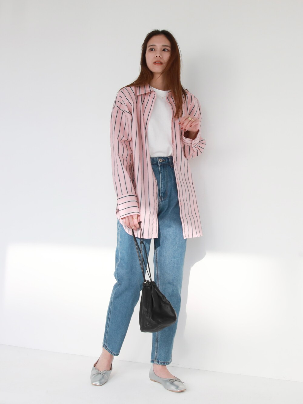 ご覧頂きありがとうございます☺︎ ピンクが珍しいストライプシャツにブルーデニムで春先取りコーデ🌸 -feepur WEAR- マネしやすいオシャレコーデを毎日投稿してるので是非followお願いします✴︎