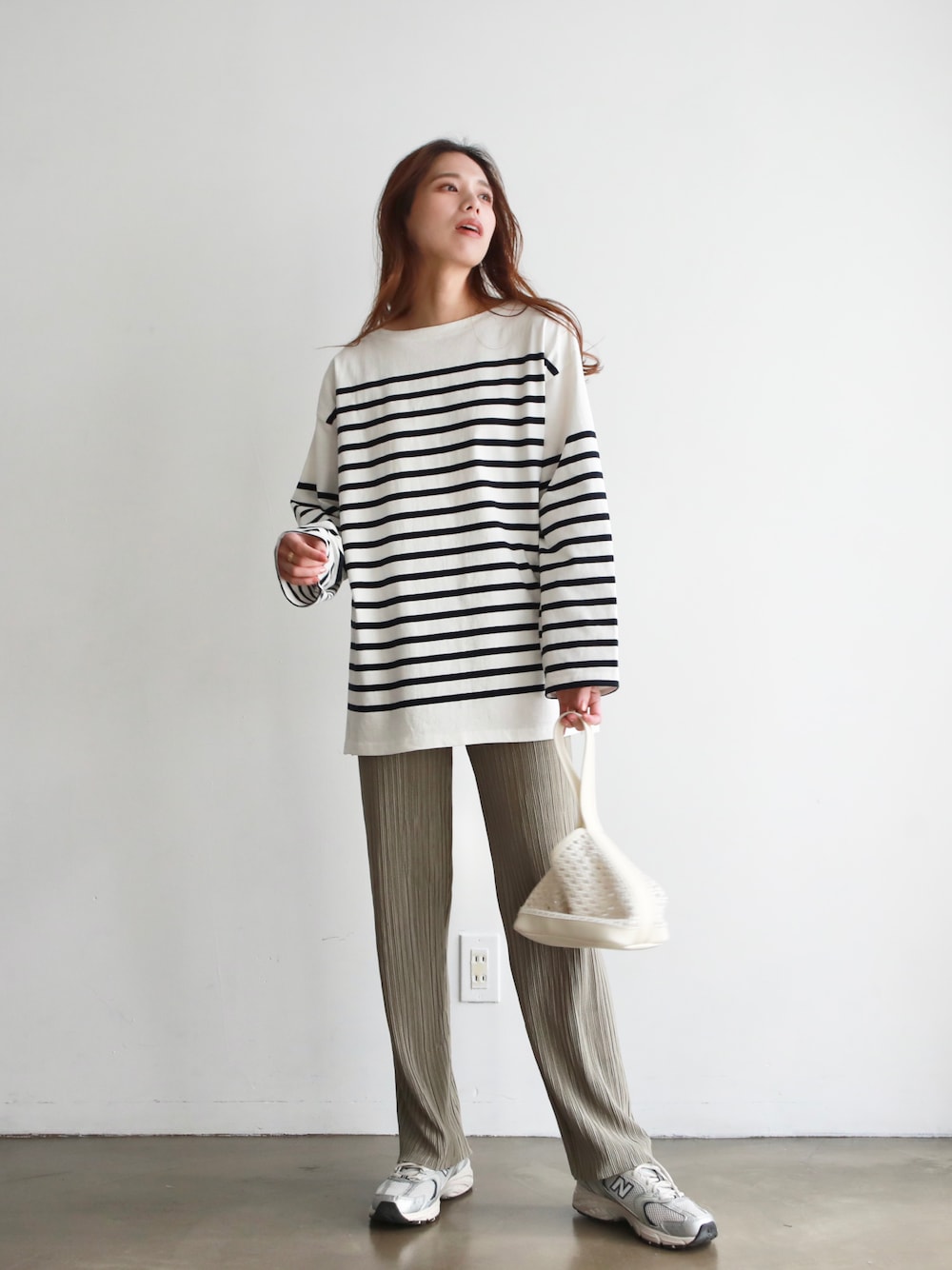feepur(feepur)のTシャツ/カットソー「バスクボーダービッグロンT」を使ったコーディネート