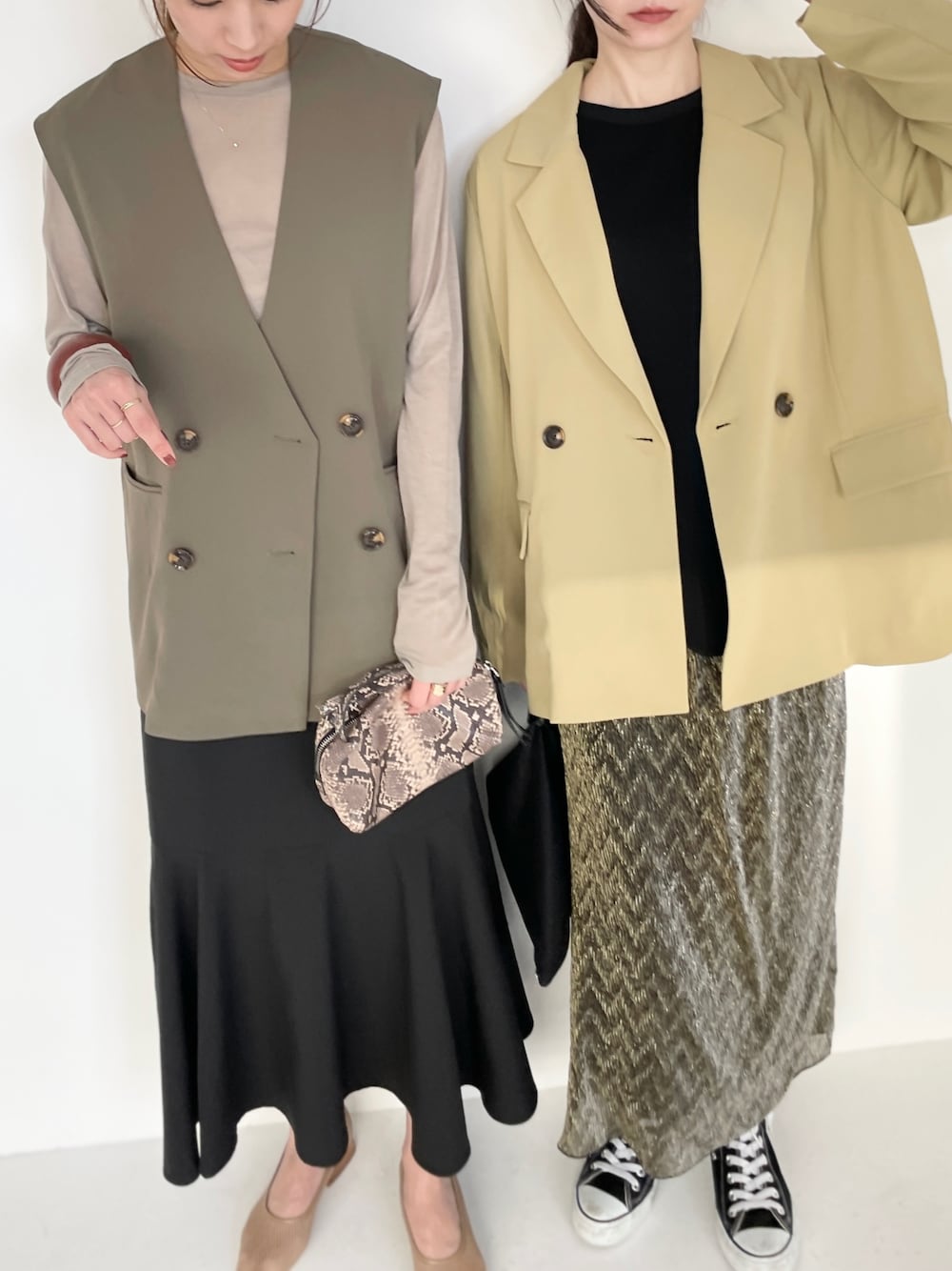 feepur(feepur)のベスト「《セットアップ対応》ノーカラージレ」を使ったコーディネート