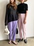 黒トップスにカラーパンツでリンクコーデ🍇🥛🍓テーパードだから足元に抜け感が出せて◎ ご覧頂きありがとうございます☺︎ -feepur WEAR- マネしやすいオシャレコーデを毎日投稿してるので是非followお願いします✴︎