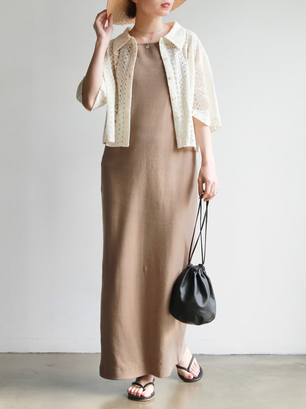 タイトなシルエットが可愛いキャミワンピにレースシャツのレイヤードスタイル🐪 ご覧頂きありがとうございます☺︎ -feepur WEAR- マネしやすいオシャレコーデを毎日投稿してるので是非followお願いします✴︎