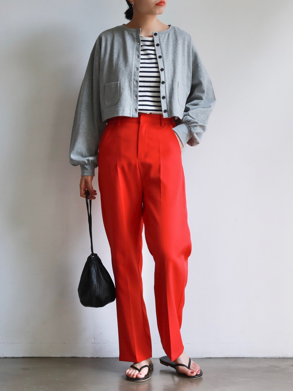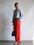 赤スラックスはグレーカーデと合わせて大人カジュアル🩴 ご覧頂きありがとうございます☺︎ -feepur WEAR- マネしやすいオシャレコーデを毎日投稿してるので是非followお願いします✴︎