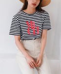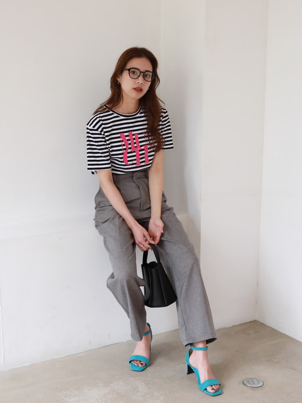 ピンクのロゴがポイントのTシャツをスラックスでキレイめカジュアルに💘 ご覧頂きありがとうございます☺︎ -feepur WEAR- マネしやすいオシャレコーデを毎日投稿してるので是非followお願いします✴︎