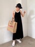 黒のキャミワンピのシンプルコーデに大振りなマルシェバッグをアクセントに🧺 ご覧頂きありがとうございます☺︎ -feepur WEAR- マネしやすいオシャレコーデを毎日投稿してるので是非followお願いします✴︎