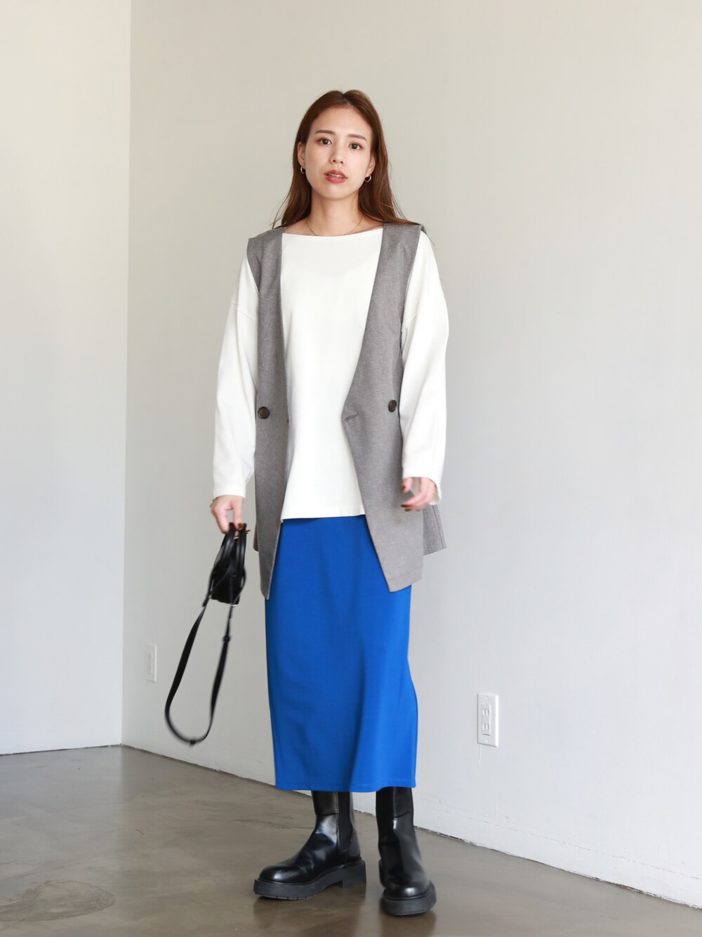 ちょっと秋さきどりのカラーコーデ💙 ブルーのスカートはモードにキマるのが◎ ご覧頂きありがとうございます☺︎ -feepur WEAR- マネしやすいオシャレコーデを毎日投稿してるので是非followお願いします✴︎