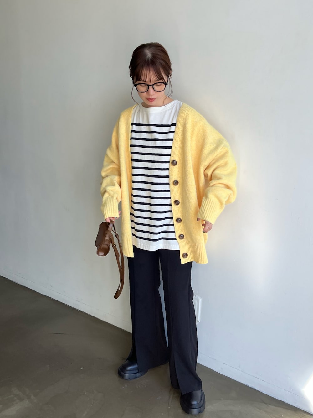モノトーンコーデに黄色カーディガンで優しく差し色をプラス🐣 スラックスは大人気のsayaコラボアイテム❤︎154cmのモデルさんでも長すぎなくて🙆♀️ 【feepur by saya】ㅤㅤㅤㅤㅤㅤㅤㅤㅤㅤㅤㅤㅤ 大人気インフルエンサーsayaさんとfeepurのコラボアイテムが9/9 fri 12:00より販売スタート‼ ご覧頂きありがとうございます☺︎ -feepur WEAR- マネしやすいオシャレコーデを毎日投稿してるので是非followお願いします✴︎