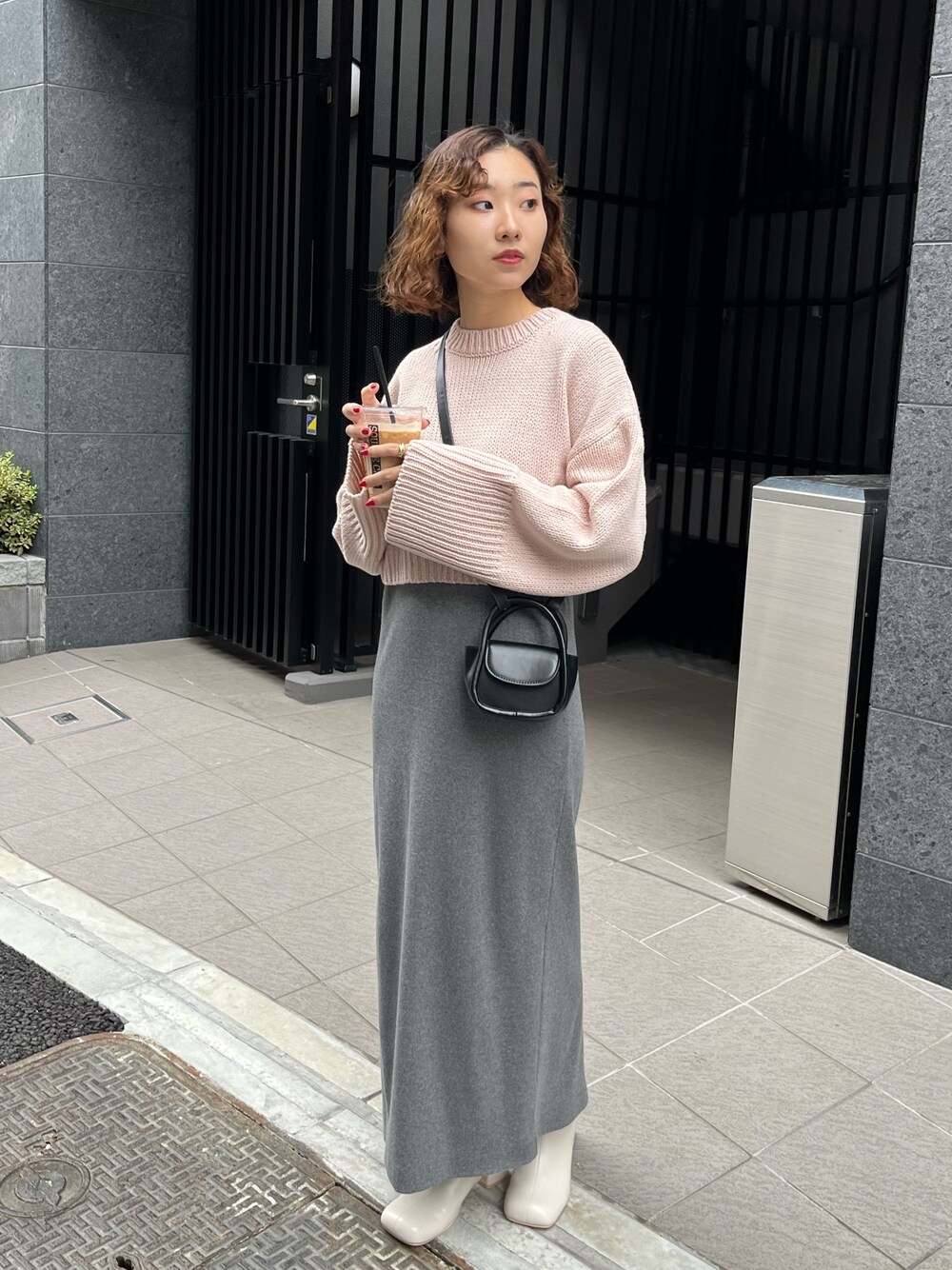 リブのキャミワンピにゆるっと感が可愛いメランジニットをonしたレイヤードコーデ🌫️ ご覧頂きありがとうございます☺︎ -feepur WEAR- マネしやすいオシャレコーデを毎日投稿してるので是非followお願いします✴︎
