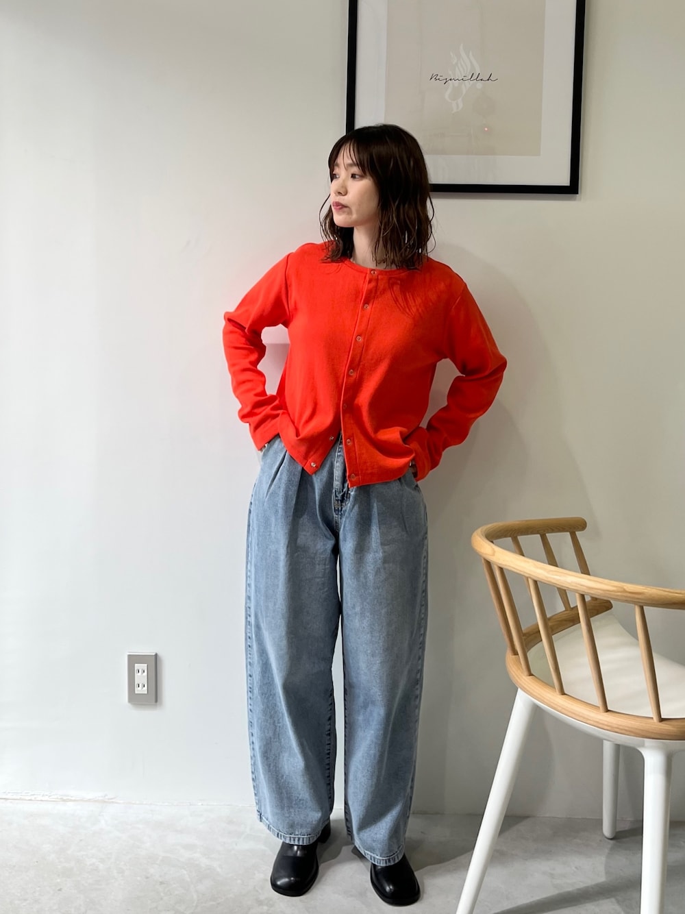 ビビッドなオレンジが可愛いカーディガンにタックデニムのシンプルコーデ🍊 ご覧頂きありがとうございます☺︎ -feepur WEAR- マネしやすいオシャレコーデを毎日投稿してるので是非followお願いします✴︎