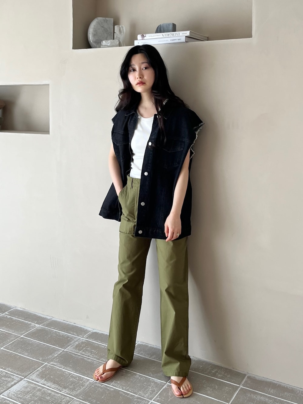 feepur(feepur)のベスト「フリンジデニムベスト」を使ったコーディネート