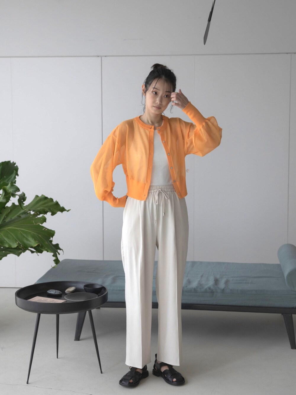 ホワイトのワントーンコーデにオレンジのシアーカーデを差し色に🧡 ご覧頂きありがとうございます☺︎ -feepur WEAR- マネしやすいオシャレコーデを毎日投稿してるので是非followお願いします✴︎