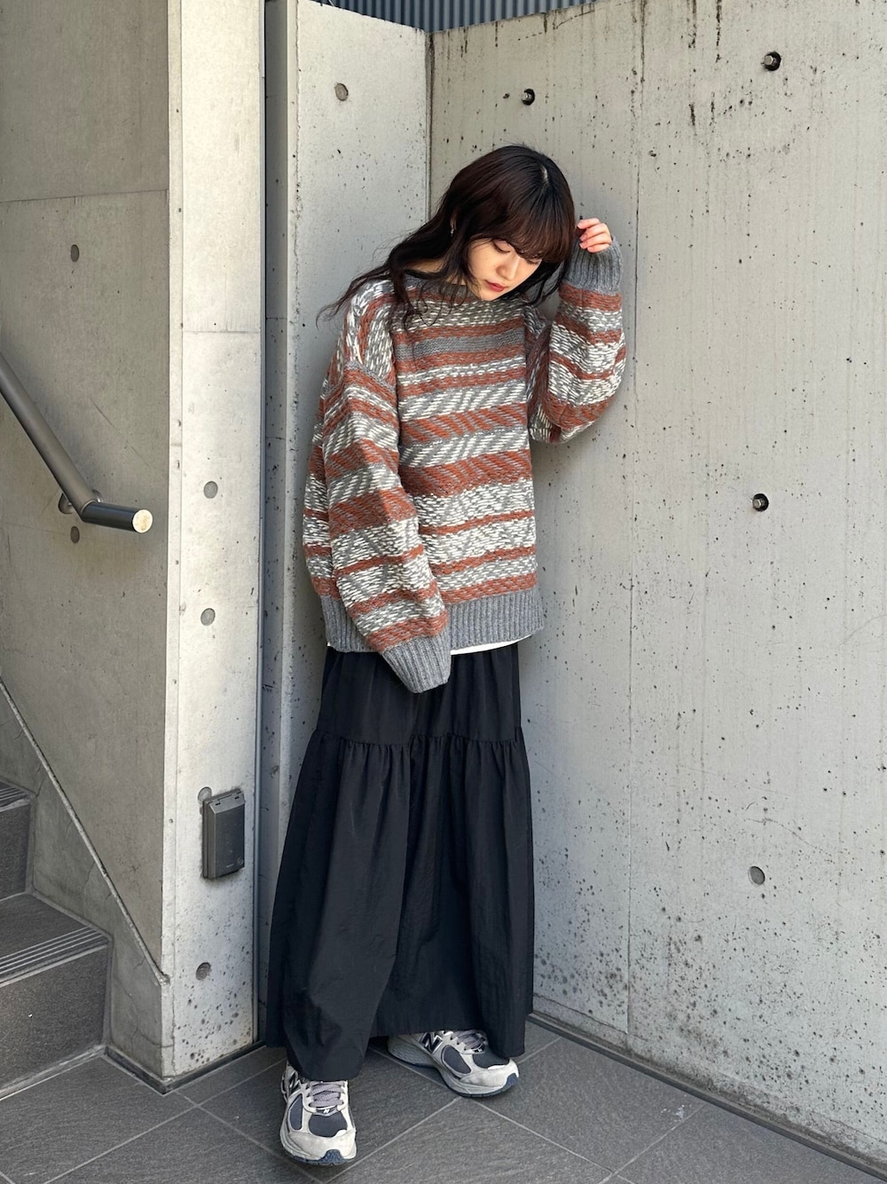 新作のシックな柄ニットにティアードスカート。シンプルコーデも柄ニット投入でアップグレード✴︎ ご覧頂きありがとうございます☺︎ -feepur WEAR- マネしやすいオシャレコーデを毎日投稿してるので是非followお願いします✴︎
