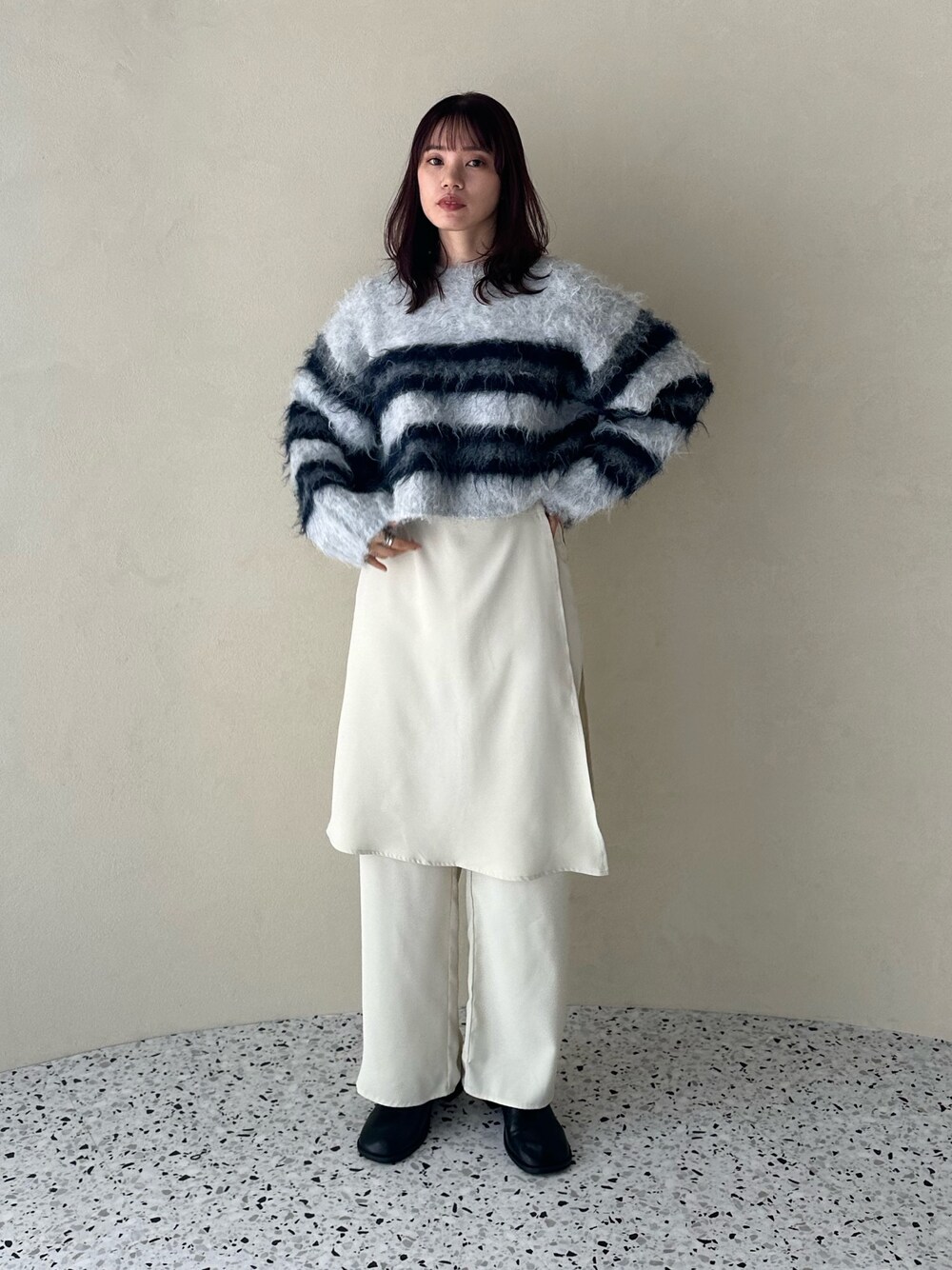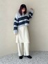 feepur(feepur)のニット/セーター「【ハンドウォッシャブル】シャギーボーダーショートニット」を使ったコーディネート