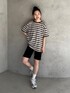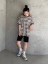 カーキの配色が可愛いボーダーTシャツにショートパンツでスポーツミックスコーデ🪥
