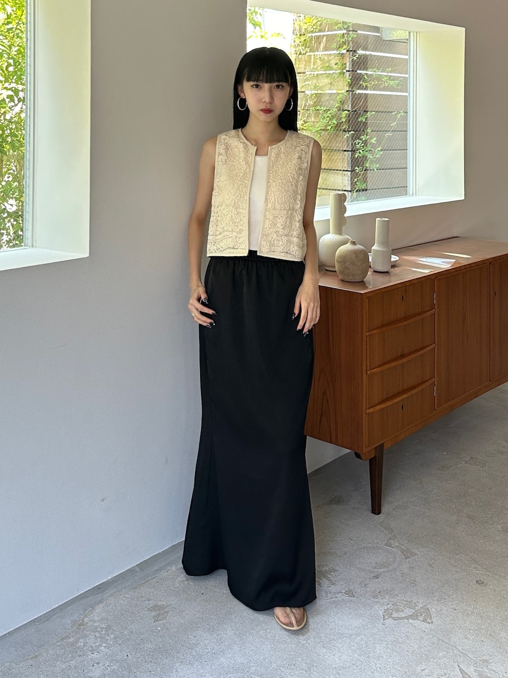 レースの生地が大人可愛いベストにタイトスカート合わせのフェミニンコーデ🗝️
