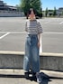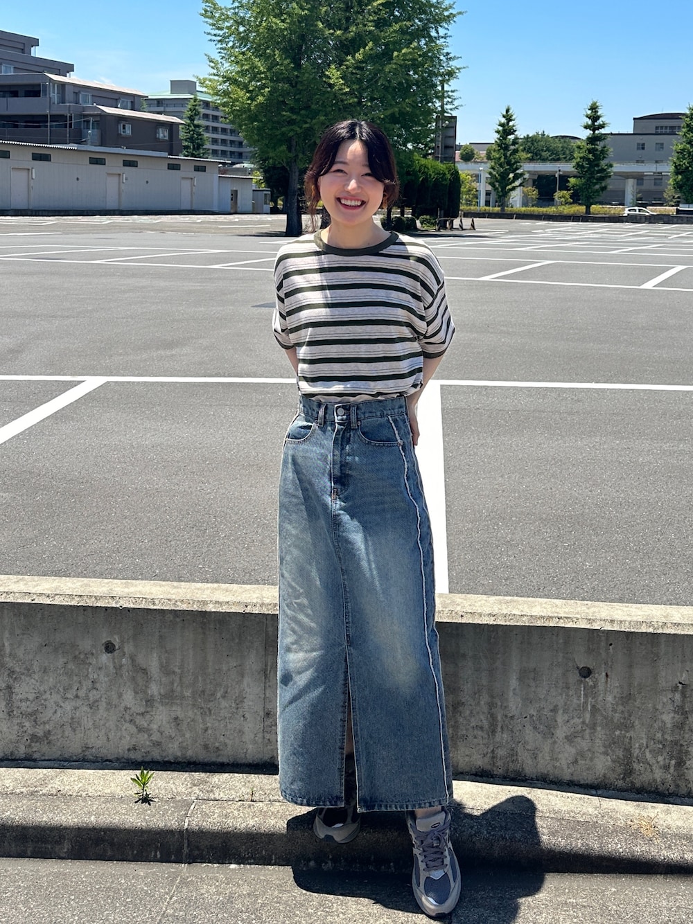 カジュアルなボーダーTにデニムスカートでストリートスタイル🛹