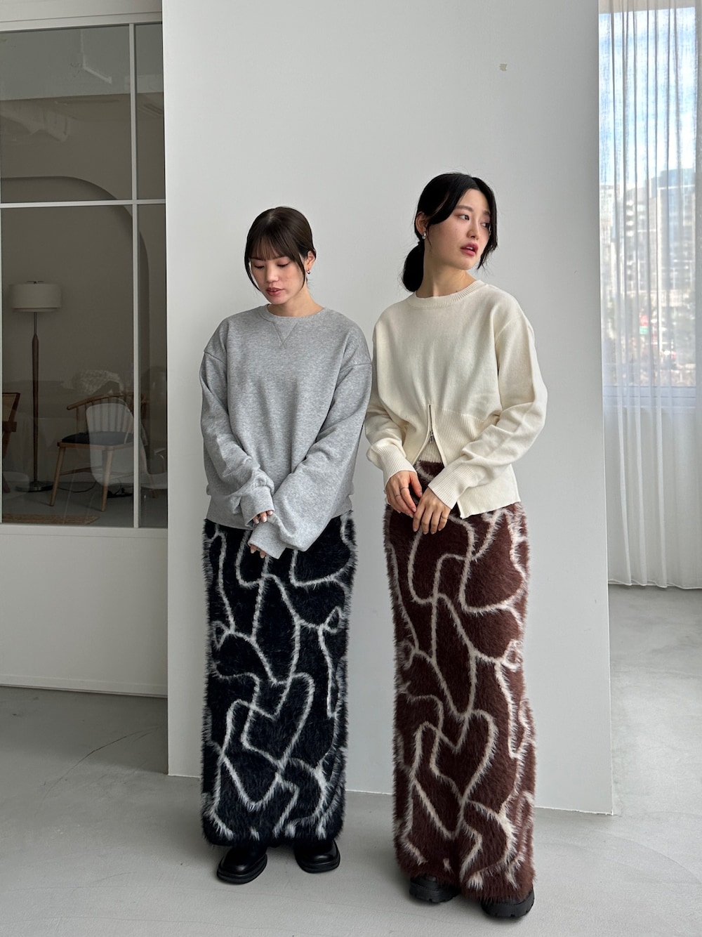 ニュアンス柄のスカートのリンクコーデ🦒 フェザーニットなのでこの時期大活躍❆