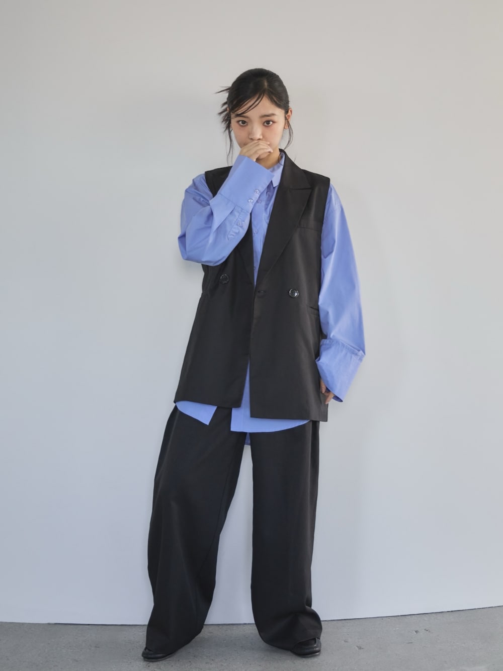 ベストと同色のスラックスでセットアップ風に✧オーバーなシャツでメンズライクが気分🛴