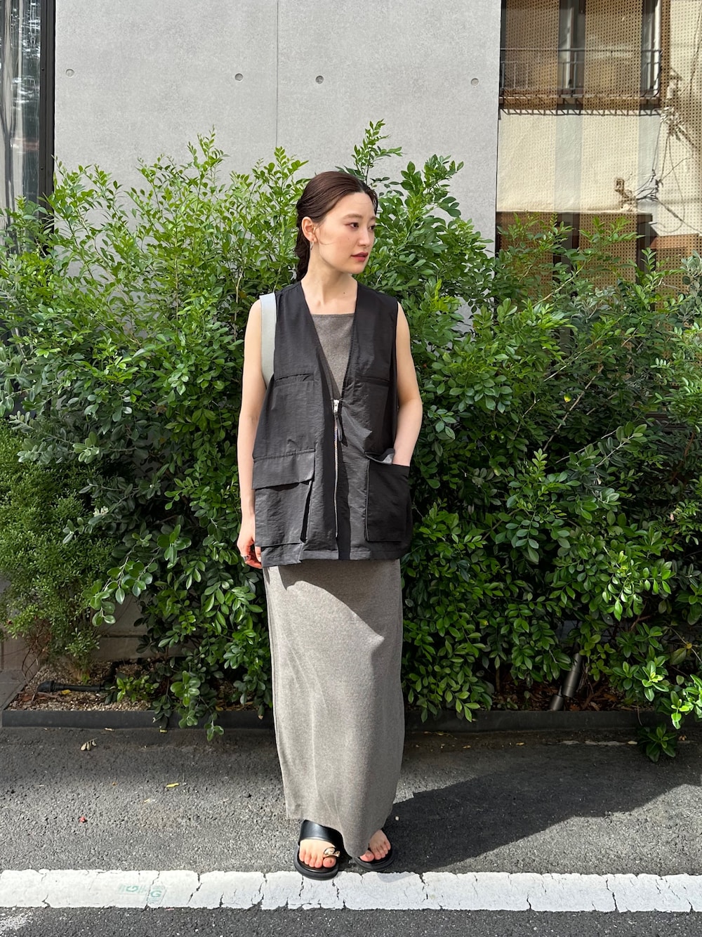 シンプルなキャミソールにもベストを合わせれば飽きずに着回せます👍🏻⟡.·