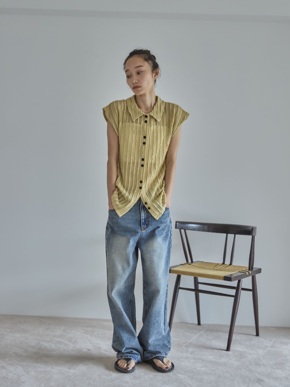 大人気のメッシュポロカーディガン🙂↕️🫶🏻 1枚で主役になってくれるのでルーズなデニムと合わせて爽やかに🍋