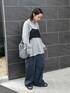 ナイロン生地を仕様したワイドパンツはハリ感と控えめの光沢がポイント。 履きやすさ抜群です! オーバーシアートップスの上にキャミソールをレイヤードすることでカジュアルすぎないコーデに✴︎