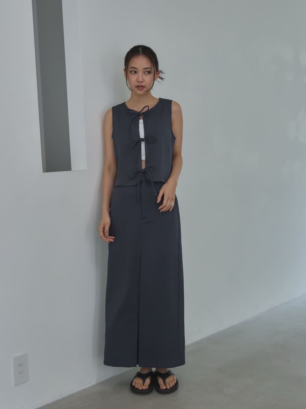 feepur(feepur)のベスト「【セットアップ可】コンフォートツイードリボンベスト」を使ったコーディネート