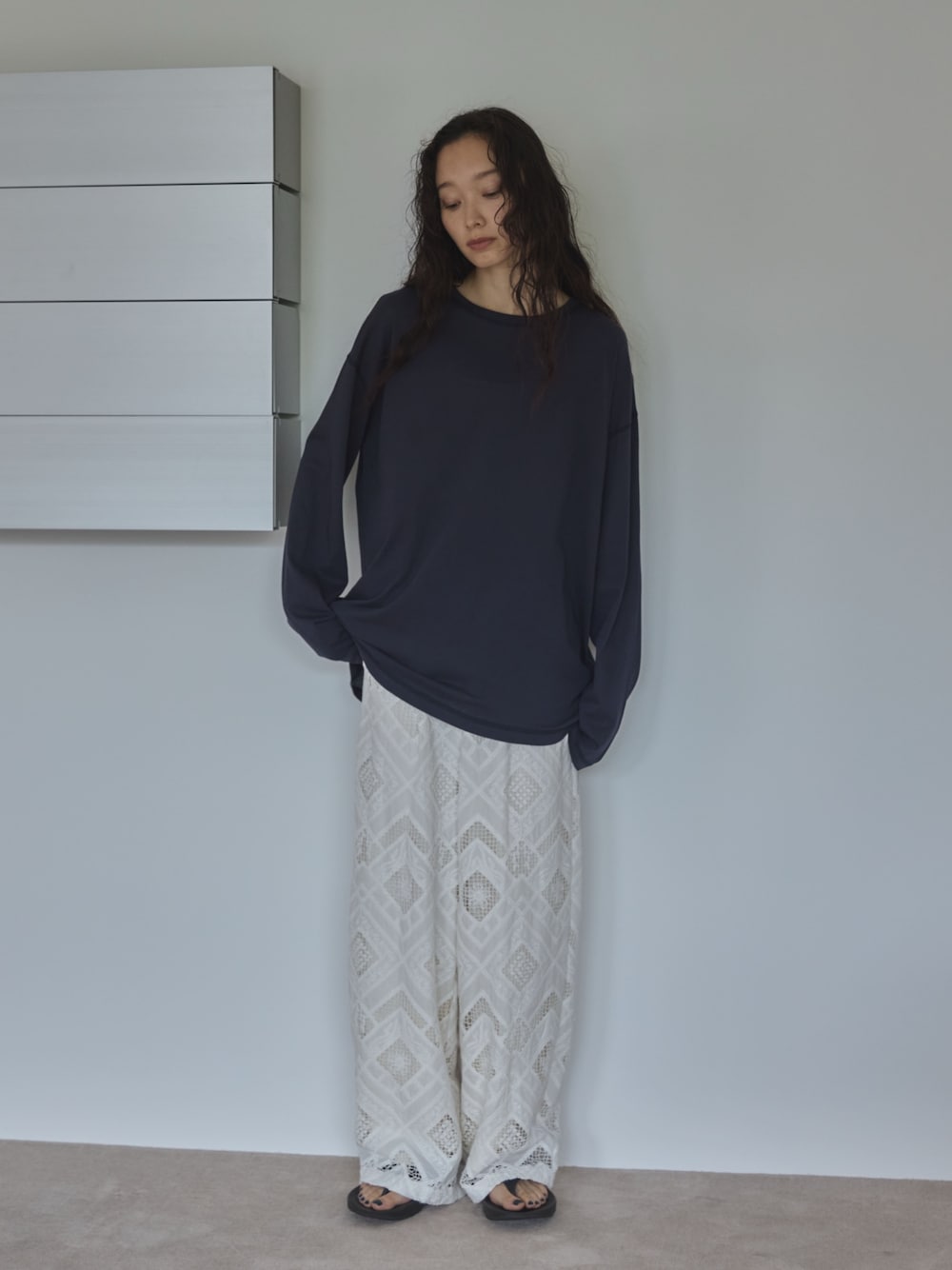 大人気のスラブ調オーバーシアートップスのLサイズで更ににゆるっと感を。 レースパンツと合わせることでカジュアルになりすぎ◎🪽