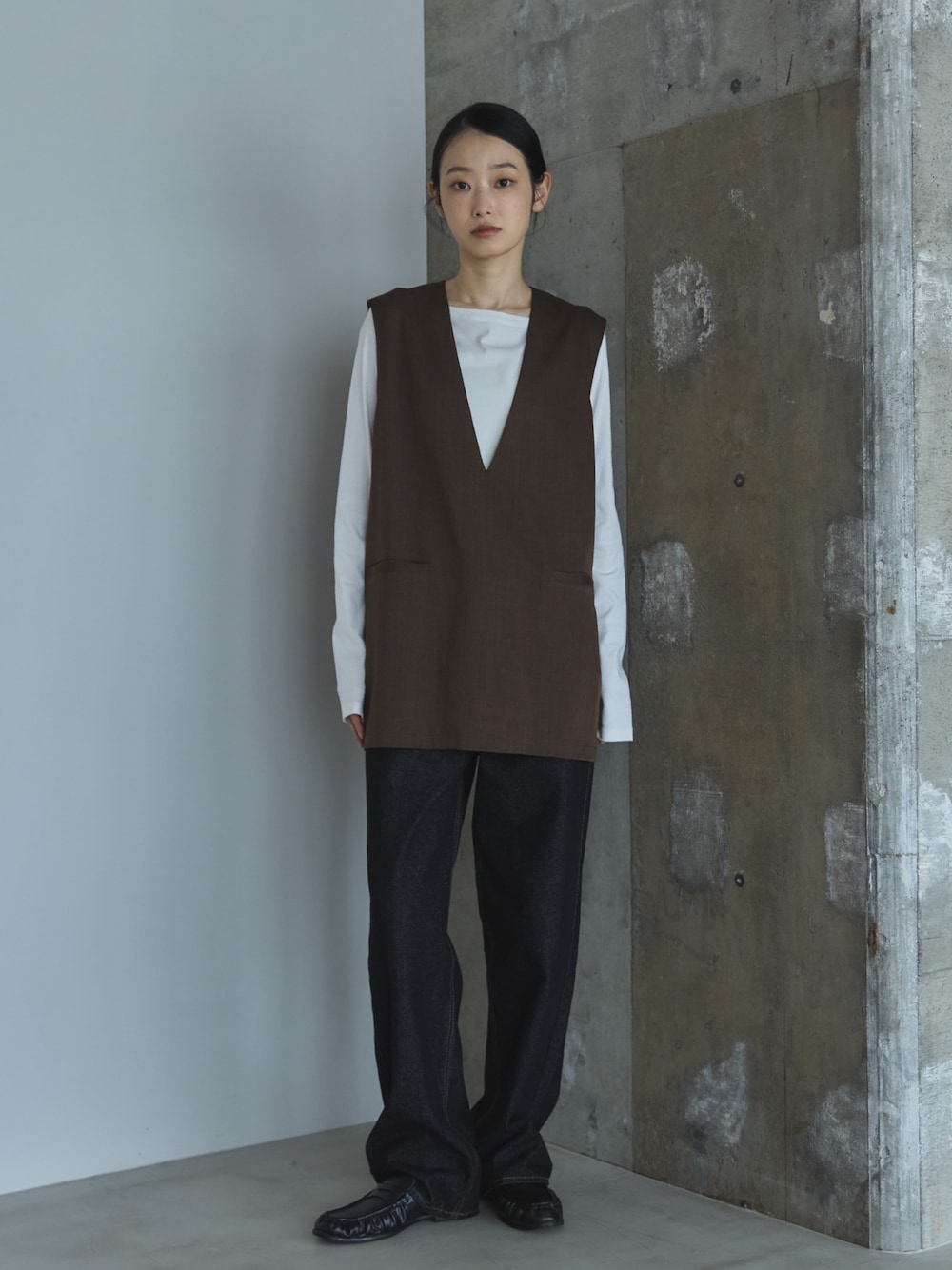 ベスト×ロンTのシンプルなレイヤードに、新色ブラウンが映える一枚。🌰 デニムを合わせて気取らず着られる、大人のリラクシースタイルに仕上げました🍂