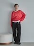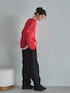 存在感のあるレッドニットを主役に、ブラックパンツで引き算した大人カジュアル👀 インナーの白をさりげなく覗かせて、重くなりすぎない抜け感をプラス。 暗くなりがちな冬のコーデにおすすめ❤️🔥